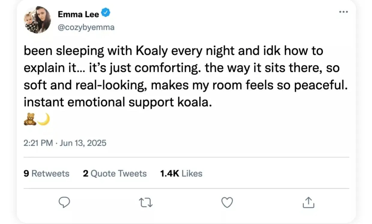 Koaly™ is not just a plush — it’s designed with NeuroMotion® technology, which mimics the calming effect of a real cuddle. Its ultra-soft texture, gentle weight, and lifelike presence make it feel incredibly comforting.